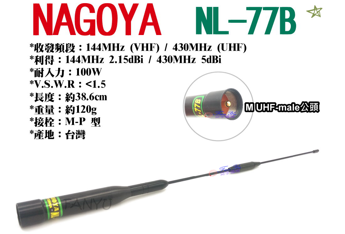 產品介紹 > 天線 > 【NAGOYA】NL-77B 雙頻天線 泛宇無線電對講機